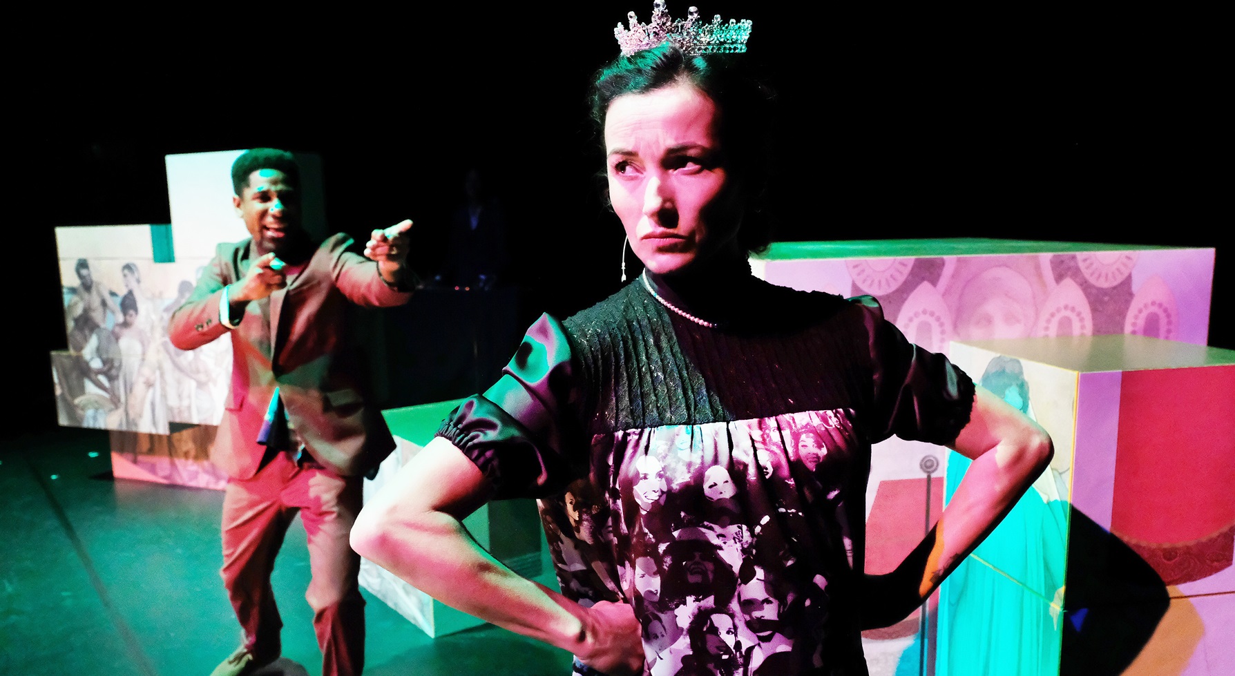 “Die heeft iets roods op haar mond, zie je, wat is dat? O kijk, nu lacht ze. En daar zitten er twee bij elkaar zonder haar – zou dat misschien besmettelijk zijn?” Wilhelmina en Kwadjo draaien de rollen voor één keer om. Normaal worden zij volop bekeken, niet alleen hier op het toneel, maar in hun echte dagelijks leven, zij als prinses en hij als levend tentoongestelde tijdens de Wereldtentoonstelling. Nu laten zij de theaterlichten op de tribune schijnen en bespreken ons daar op de stoelen, alsof wij een dierentuin zijn. Eventjes voelen we wat zij meemaken.